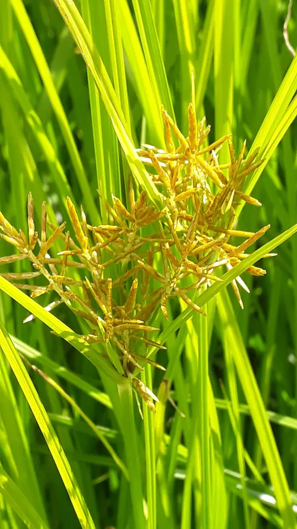 Das Unkraut fällt optisch durch seinen Dreikantigen Stängel ohne Knoten auf. Es ist hellgrün, glänzend, unbehaart und glatt. Es wächst sehr hoch und kann bis zu 70 cm lang werden. An den Blattspitzen bilden sich mehrere Äste mit Ähren aus, die gelblich-braun sind und im August – September in der Blüte sind. Über diese Blüten ist eine oberirdische Verbreitung des Unkrauts möglich.