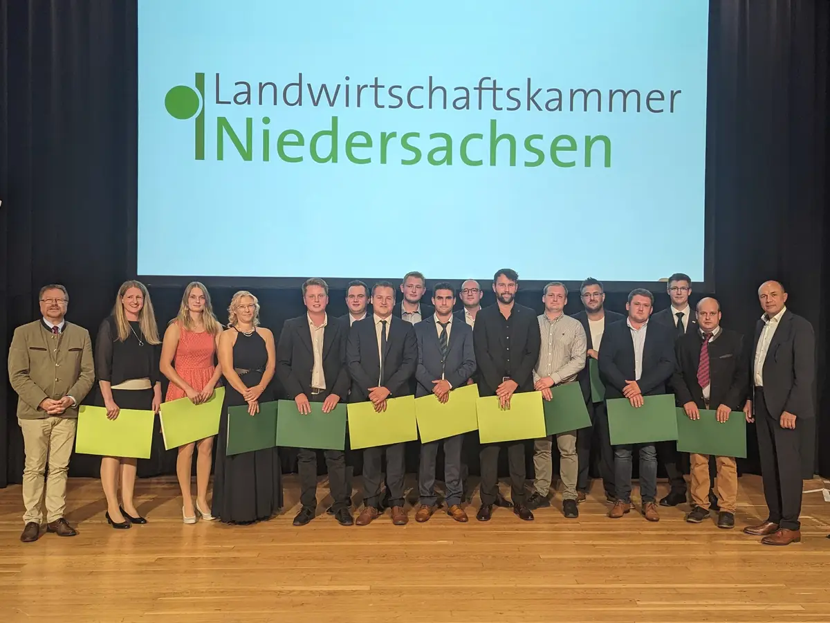 Die erfolgreichen Auszubildenden sind Torsten Bagenz (bei Matthias Pape, Lutterbeck), Dominik Curdt (bei der Kurre-Pickel GbR, Angerstein), Jan Elligsen (bei der Ebeling-Engelhardt GbR, Wolperode), Friederike Elisabeth Erle (bei Axel Rothmann, Fuldatal), Märten Feßel (beim Nds. Hengstaufzuchtgestüt Hunnesrück), Johannes Hermann Fricke (bei Joachim Sander, Groß Köhren), Jonas Geese (bei der AgroCon GbR, Imbshausen), Lucas Haake (bei der Land BG Ballenhausen), Marlon Häger (bei Arne Röttcher, Lagershausen), Joel Hain (bei Michael Dörnte, Lutterbeck), Friedrich-Willi Herbst (bei Konstantin Preis, Duderstadt), Hendrik Holze (bei der Kurre-Pickel GbR, Angerstein), Jana Patrice Hünermund (bei der Gebrüder Weber GbR, Steinbach), Lars Jünemann (bei Helmut Rhode, Mingerode), Ferdinand Krieter (beim Biolandhof Müller-Oelbke, Etzenborn), Johanna Lindemann (bei der Plesse Milch GmbH & Co. KG, Reyershausen), Niklas Mann (bei Henning Meyer, Rengershausen), Jan-Cédric Maussang (bei Marcus Stieg, Reiffenhausen), Jessica Meese (beim Versuchsgut der Uni Göttingen, Relliehausen), Florian Menge (bei Arne Kalbreier, Hahausen), Matthis Menzel (bei der Böning GbR, Potzwenden), Justus Nolte (bei Frank Nolte, Desingerode), Laura Nolte (bei Frank Nolte, Desingerode), Hauke Oerke (bei Christian Höltje, Moringen), Marius Peckmann (bei der Sonnenberg GbR, Ahlshausen), Felix Rohmeier (bei der Schütte GbR, Bevern), Laura Schaper (bei der Scheibner-Emmig GbR, Espol), Niklas Schrader (bei Markus Schelm, Billerbeck), Moritz Seidensticker (beim Versuchsgut der Uni Göttingen, Relliehausen), Viktor Stillig (bei Arne Kalbreier, Hahausen), Elias Trutwig (bei der Gebrüder Weber GbR, Steinbach), Vincent Winkel (bei Jochen Maring, Winzenburg) und Leon Winter (beim Nds. Hengstaufzuchtgestüt Hunnesrück).