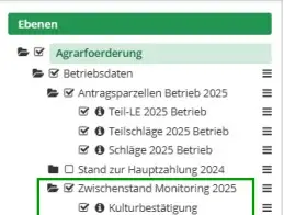 Um zu prüfen, ob die Kultur, die im Betriebsprämienantrag angegeben, auch anerkannt worden ist, sind im Bereich „Ebenen“ folgende Kreuze zu setzen: