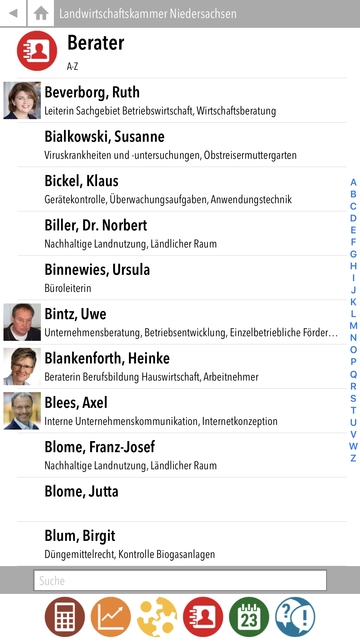 Gut vernetzt mit Kontakt- und Adressinformationen sind Sie mit dem Berater-Modul. Ausgewählt werden können unsere Beraterinnen und Berater von A-Z, nach Fachgebieten oder nach Dienststellen geordnet.