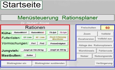 Mit dem Rationsplaner (Fütterungsprogramm) kann der Landwirt selbst die notwendigen Rationsänderungen (für Milchvieh, Trockensteher, Jungvieh und Bullenmast) jederzeit eigenständig kalkulieren. Praktiker sehen den besonderen Nutzen des Rationsplaners darin, sich wieder intensiv mit dem Fütterungsmanagement auseinander zu setzen und nicht mehr vom Futterberater abhängig zu sein. Man kann wieder mitreden!