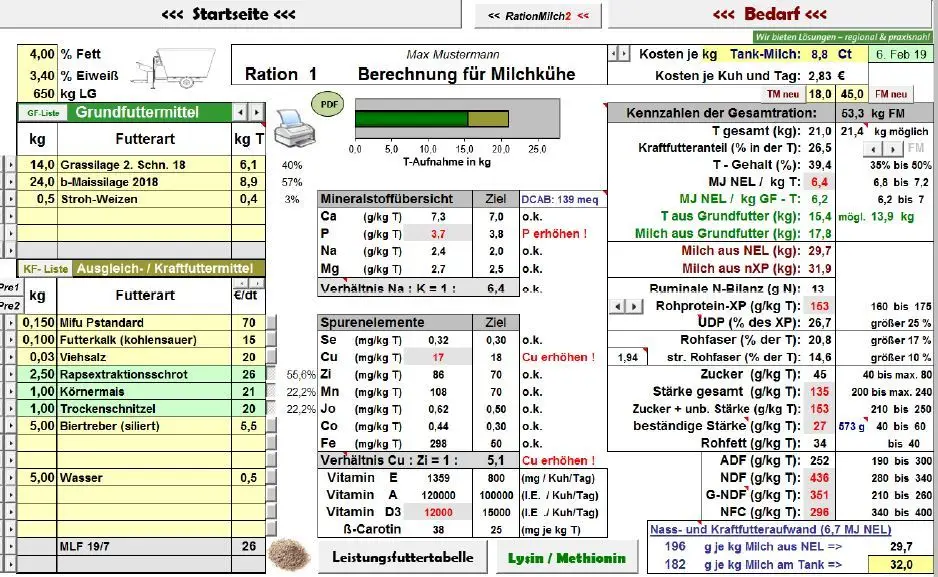 - eigenständige und vollständige Analyse der Fütterung mit dem Rationsplaner
