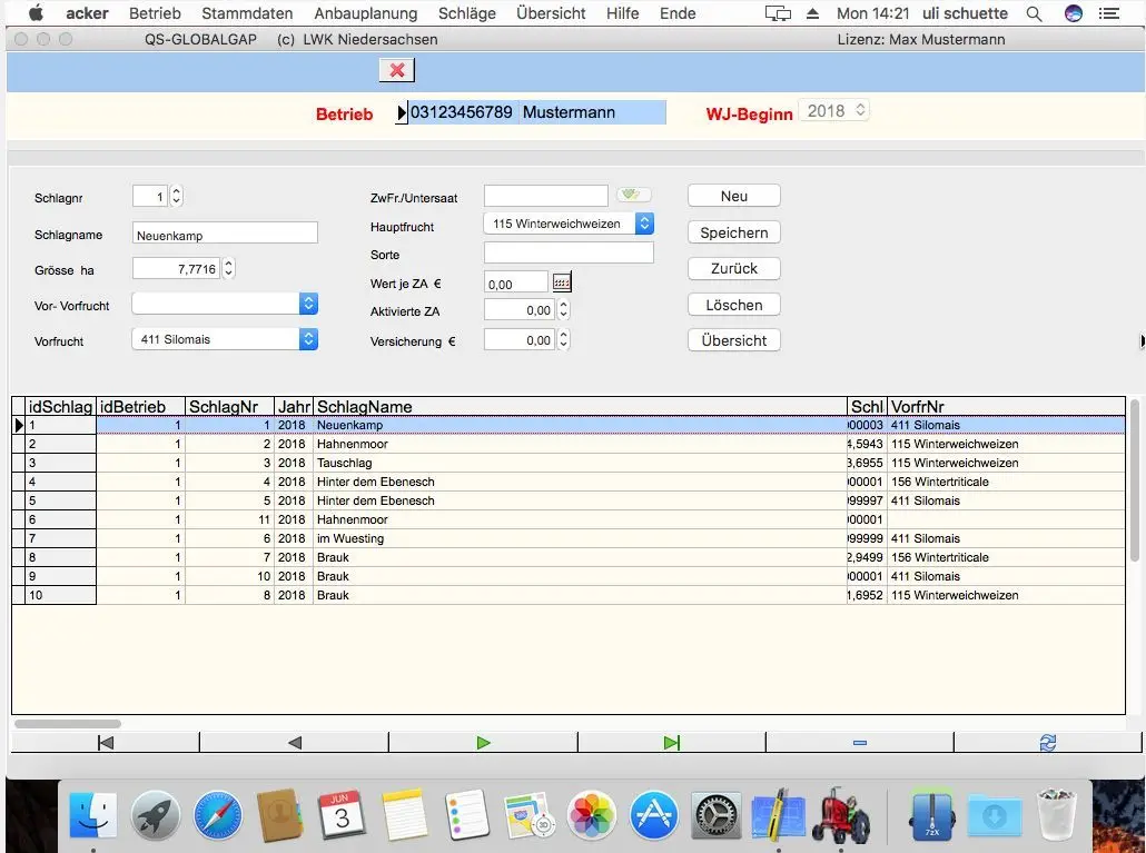 Die bewährte Ackerschlagkartei der Landwirtschaftskammer Niedersachsen, Bezirksstelle Braunschweig wurde überarbeitet. Sie steht nun, rechtzeitig zum kommenden Wirtschaftsjahr, mit neuer Datenbankstruktur und neuem Layout unter Windows und Apple OSX zur Verfügung.