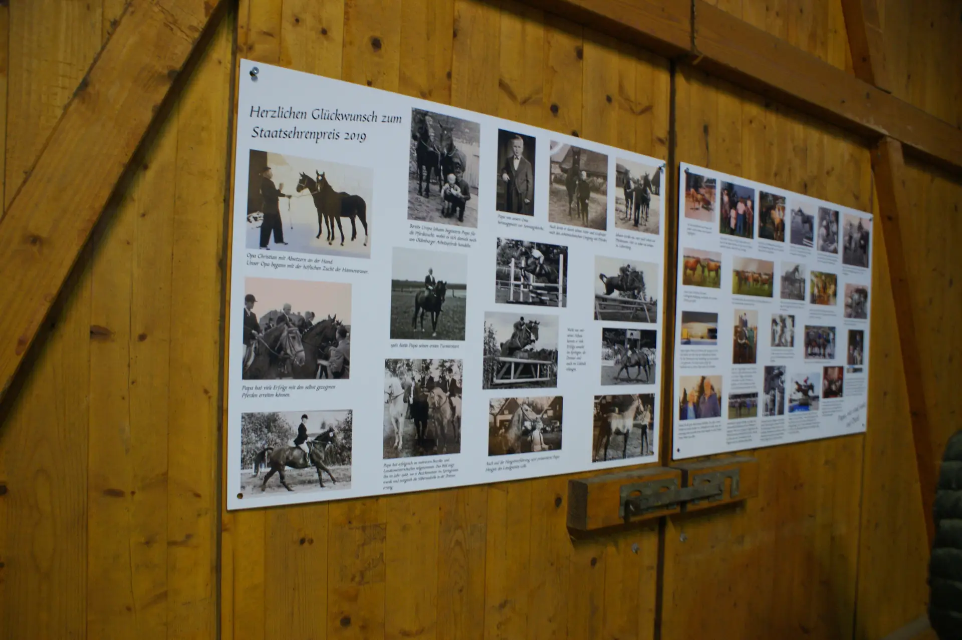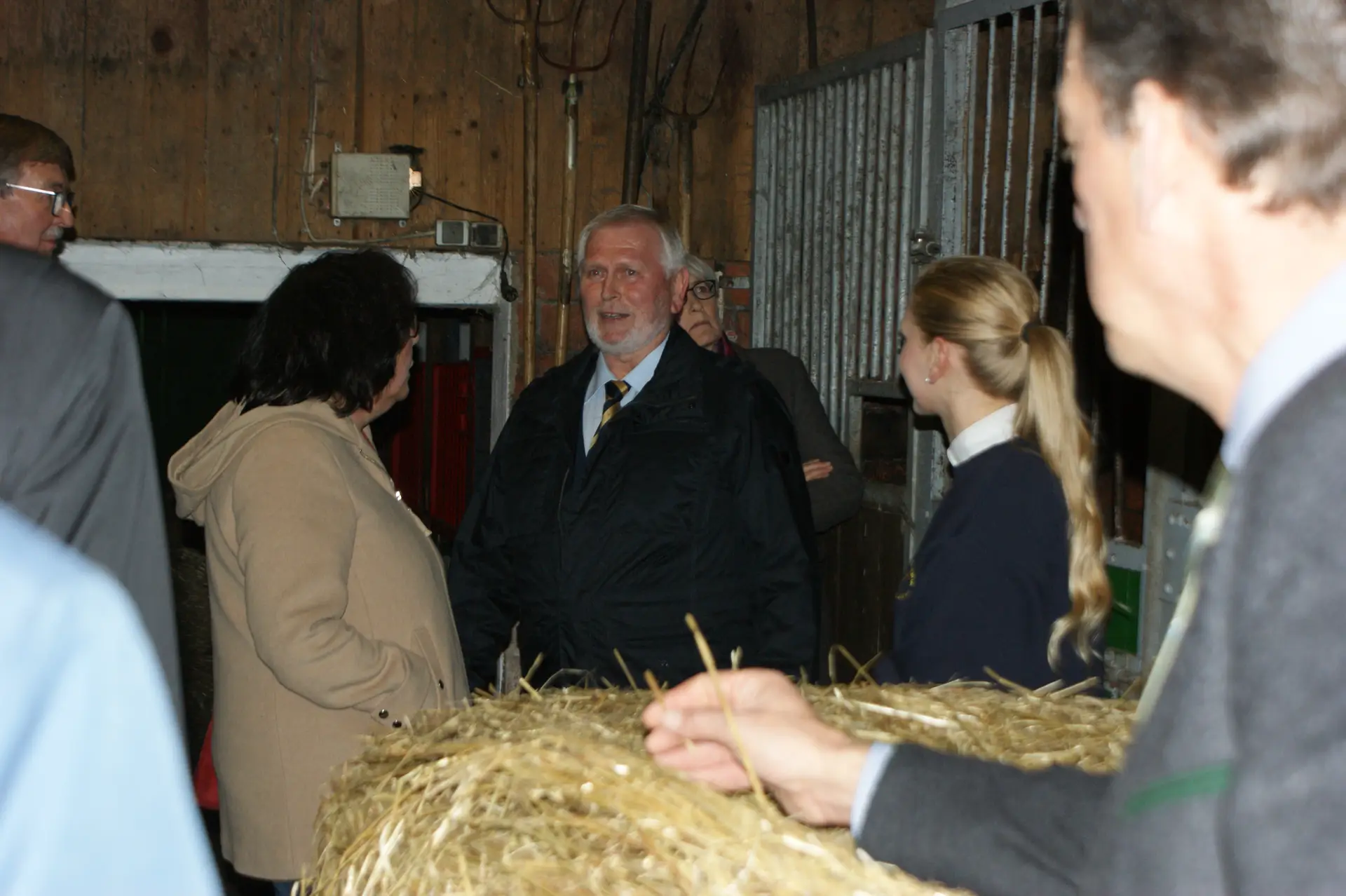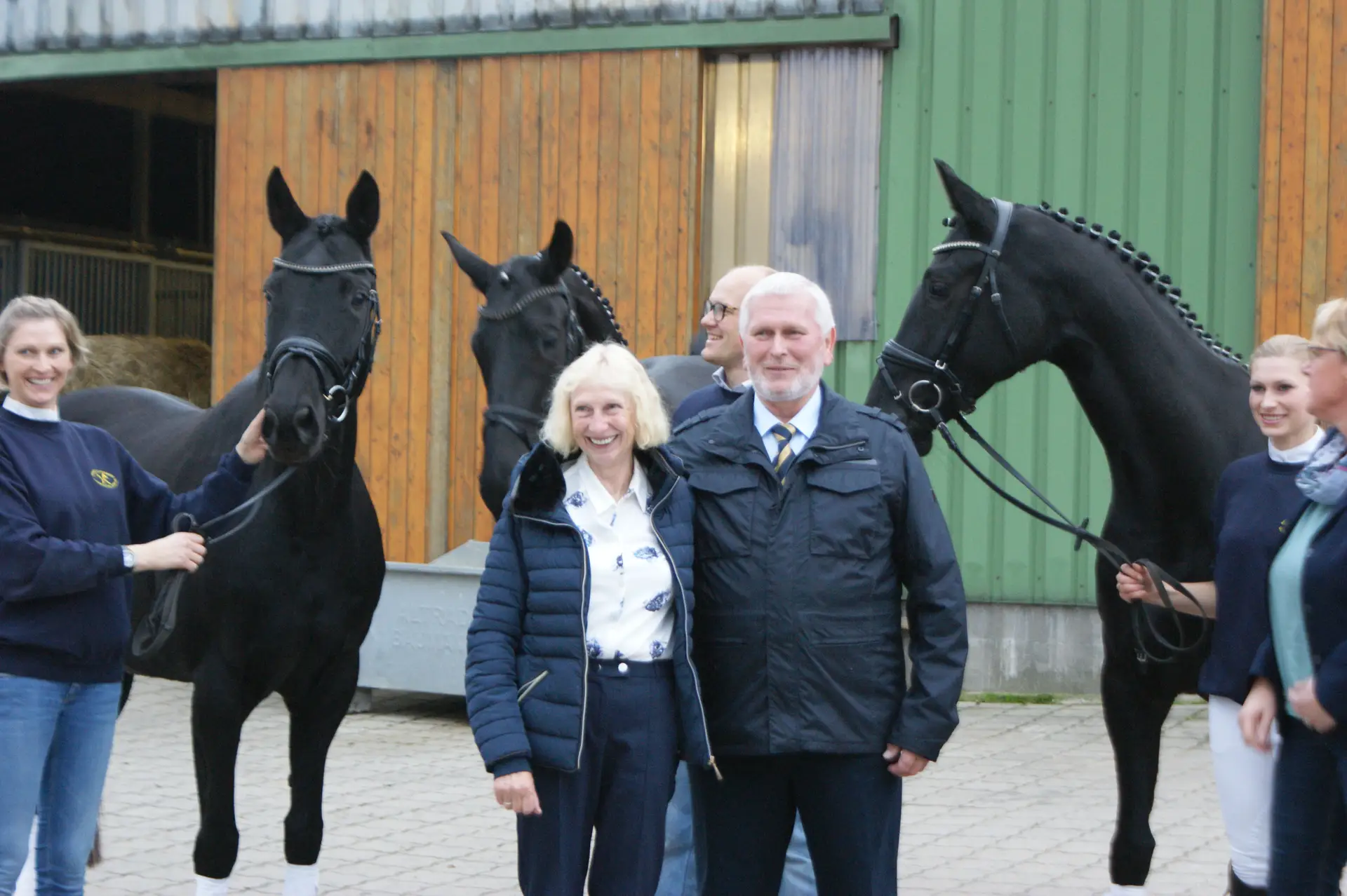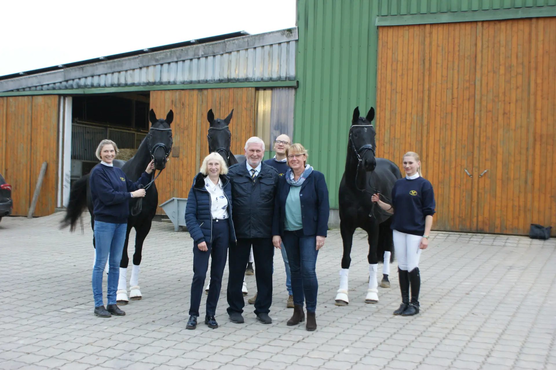 Während des Betriebsrundgangs konnten sich die Gäste ein Bild von der Hannoveranerzucht des Preisträgers machen. Die Familie Gerdes führte je einen Hannoveraner im Freispringen und unter dem Sattel vor. Anschließend wurde eine Familie aus der preisgekrönten Zucht den interessierten Gästen in der Reithalle vorgestellt.