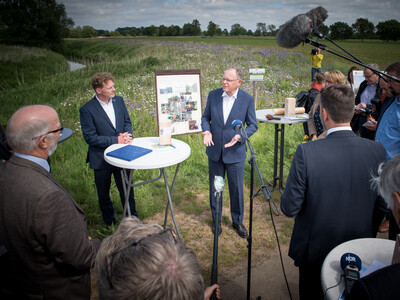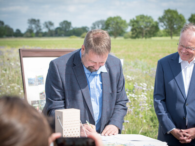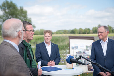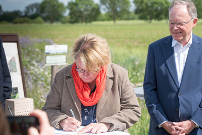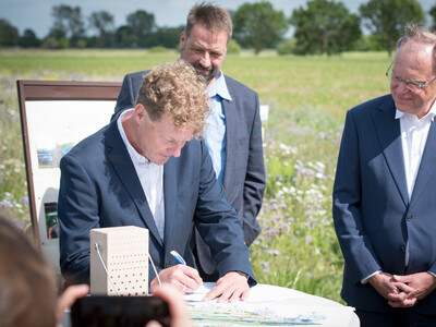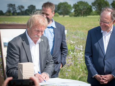 Ministerpräsident Stephan Weil (M.) unterzeichnet am 25.05.2020 in Wunstorf die Vereinbarung Der Niedersächsischer Weg - Maßnahmenpaket für den Natur-, Arten- und Gewässerschutz.Wolfgang EhreckeDie Landesregierung werde für die Umsetzung der zahlreichen konkreten Schritte „erhebliche finanzielle Mittel zur Verfügung stellen“, versicherte der Ministerpräsident: „Die Umsetzung wird durch eine Erfolgskontrolle und ein Monitoring gesichert. Dieser starke gemeinsame Schulterschluss ist ein großer Fortschritt für den Umweltschutz in Niedersachsen. Auf dieser Grundlage wird es jetzt darum gehen, einen Gesetzentwurf zu erarbeiten, der die Vereinbarung umsetzt.“