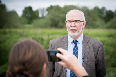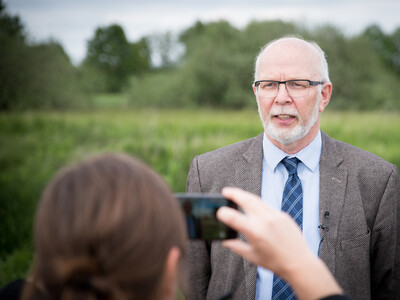 Dr. Holger Buschmann (NABU, vorn) nach der Unterzeichnung der Vereinbarung Der Niedersächsische Weg – Maßnahmenpaket für Natur-, Arten- und Gewässerschutz am 25.05.2020 in Wunstorf.Wolfgang Ehrecke