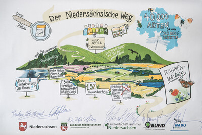 Handsigniertes Poster anlässlich der Unterzeichnung der Vereinbarung Der Niedersächsische Weg – Maßnahmenpaket für Natur-, Arten- und Gewässerschutz am 25.05.2020 in Wunstorf.Wolfgang Ehrecke