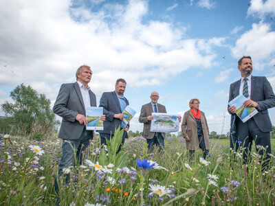 Präsentierten den Niedersächsischen Weg (v.l.): Heiner Baumgarten (BUND), Dr. Holger Hennies (Landvolk), Kammerpräsident Gerhard Schwetje, Landwirtschaftsministerin Barbara Otte-Kinast, Dr. Holger Buschmann (NABU) und Umweltminister Olaf Lies.Wolfgang EhreckeWunstorf - Symbolträchtig ist die Vereinbarung (siehe .pdf-Anhang) auf einem Blühstreifen der Familie Widdel am Ortsrand von Mesmerode (Region Hannover) unterzeichnet worden. Familie Widdel bewirtschaftet ihren landwirtschaftlichen Betrieb bereits seit Generationen.