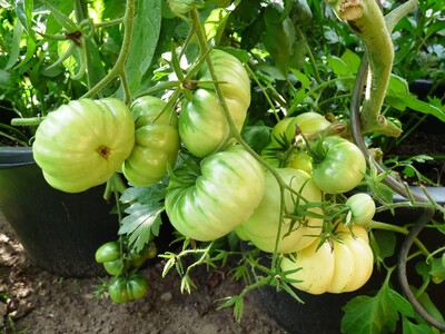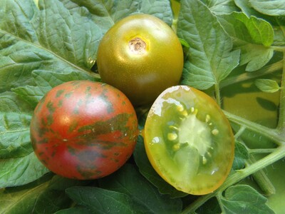 Unter den vielfältigen Tomatensorten befinden sich auch einige Grüne. Die reifen Früchte enthalten kein giftiges Solanin mehr, sofern sie weich und saftig sind. Mit ihrem hellgrünen Fleisch sind sie nicht nur optisch ein Hingucker, sie haben auch ein sehr intensives Aroma. Auch grün marmorierte Sorten sind unbedenklich.