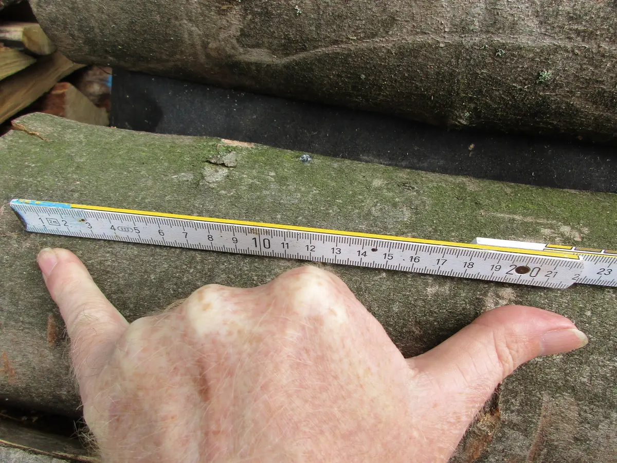 Jeder sollte einmal sein eigenes Maß überprüfen bzw. „eichen“, dabei auch gleich das Maß der 4 aneinandergelegten Finger (ohne Daumen) überprüfen – dies ergibt meistens 8 cm (ein Maß, bei dem i.d.R. die Holzaufarbeitung endet)