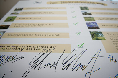 Hannover - Die obigen sowie weitere Eckpfeiler für mehr Natur- und Artenschutz haben die Allianzpartner im Niedersächsischen Weg am 29. Oktober 2020 veröffentlicht und diese erneut mit einer Unterschrift bekräftigt. Zu den Partnern gehören die Niedersächsische Landesregierung, die Landwirtschaftskammer Niedersachsen, das Landvolk Niedersachsen sowie die Naturschutzverbände BUND und NABU.