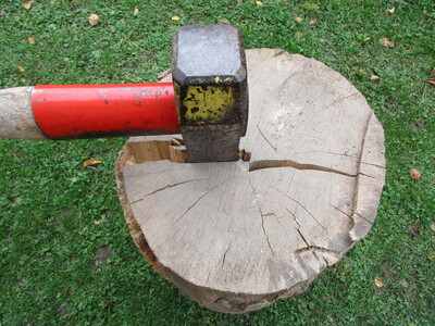 Ein Stahlkeil darf nie mit der Axt ins Holz geschlagen werden. Hilfsmittel, wie Keile zum Spalten von astigen verwachsenen Stücken, müssen zur Axt passen. Wegen der Gefahr wegfliegender Metallsplitter ist Stahl auf Stahl ein absolutes No-Go.