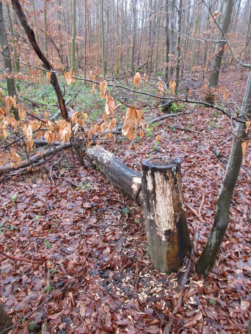- durch den langsamen Verfall gelangt nur wenig mehr Licht in den Bestand, was zum einen eine zu schnelle Starkastbildung bei den Nachbarn verhindert, zum anderen einen zu großen Lichtfeinfall, der die Konkurrenzvegetation wie Brombeere beflügeln könnte;