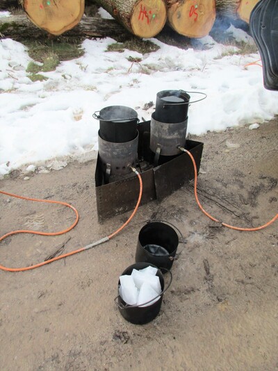 Der Blick auf einige, mit einer wächsernen Schicht überzogene Stirnflächen wird manche Besucher vielleicht stutzig machen. Dahinter verbirgt sich eine werterhaltende Schutzmaßnahme. Für einige Holzkäufer ist nach dem Zuschlag ein Dienstleister tätig geworden. Er hat die Stämme an den Schnittflächen mit einem Paraffinwachs versiegelt und luftdicht verpackt, um sie für eine längere Zeit zu konservieren.