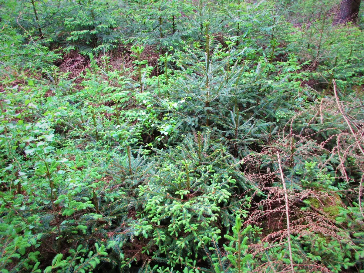 Stammzahlreich In einem lockeren Fichtenaltholz läuft eine Naturverjüngung sehr oft so stammzahlreich auf, dass die kleinen Sämlinge wie „Haare auf dem Hund“ (Bürstenverjüngung) anwachsen. Das ist grundsätzlich ja zunächst nicht verkehrt. Nur: in manchen Beständen findet keine natürliche Selbstdifferenzierung statt. Die „Bürstenverjüngung“ lässt den Bestand dann instabil werden und führt zu Zuwachseinbußen. Der Bestand ist schneebruchgefährdet, wächst sehr eng mit geringen Kronenanteilen auf und erhält schlechte h/d-Verhältnisse (Baumhöhe zu Brusthöhendurchmesser; siehe Info-Kasten).