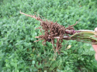 Wickenwurzel mit KnöllchenbakterienAnnette HoffmannIn Roten Gebieten gewinnen ungedüngte Zwischenfrüchte infolge des Anbaugebotes vor einer Sommerung an Bedeutung. Doch die Etablierung eines vitalen, multifunktionalen Bestandes ohne N-Düngung ist meist schwieriger als gedacht. Das ist besonders auf Böden mit geringer N-Nachlieferung, geringem Nmin-Rest nach Ernte der Vorfrucht (< 40 kg N/ha) und Strohverbleib (v. a. Roggen- u. Weizenstroh) auf der Fläche der Fall. Treffen diese drei Faktoren zu, ist die Verwendung von Nichtleguminosen (z. B. Ölrettich, Senf) wenig erfolgversprechend, da diese auf ein ausreichendes N-Angebot im Boden angewiesen sind. In diesem Fall, aber auch bei weniger extremen Rahmenbedingungen, ist ein Umdenken hinsichtlich der Anbaustrategie erforderlich. Denn schlecht entwickelte Zwischenfruchtbestände aus Ölrettich und Senf beispielsweise erreichen schnell die Blühphase und gehen verfrüht in die Samenbildung über, was weitere Probleme verursacht bzw. Maßnahmen erfordert. Für Unkrautunterdrückung und andere pflanzenbauliche Ziele sind solche Bestände nicht dienlich und auch Mindererträge der Folgekultur sind bei suboptimaler Bestandesführung nicht auszuschließen.