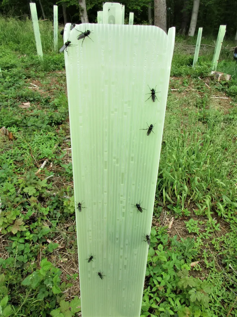 In diesem Fall kann aber Entwarnung gegeben werden. Wie die Nordwestdeutsche Forstliche Versuchsanstalt auf Anfrage mitteilt, sind es die harmlosen Märzfliegen (Bibio marci), auch Markusfliegen genannt, die derzeit schwärmen und sich dann gern in offenen Gebieten aufhalten und auf hellen Flächen wie Wuchshüllen niederlassen.
