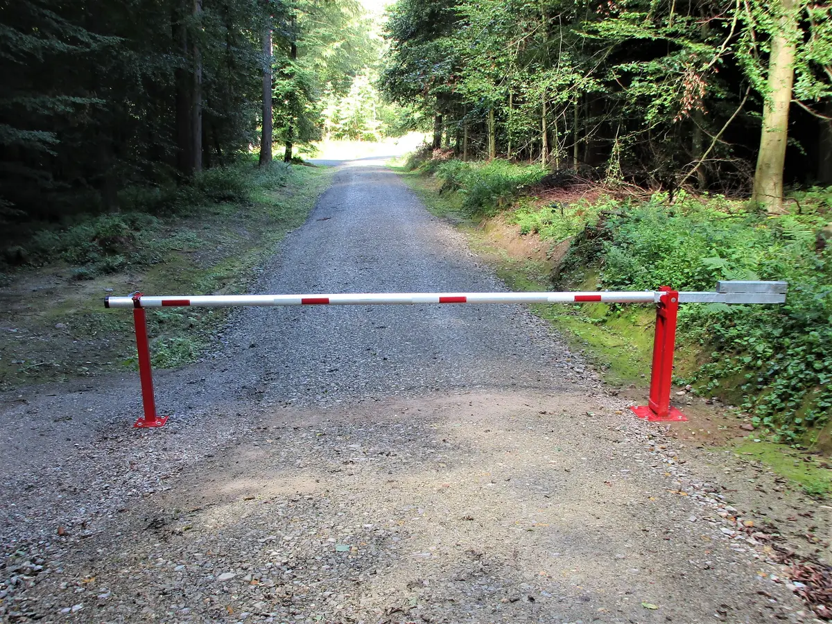 ◾ Gefahr ist ein wichtiges Stichwort, denn: eine Schranke muss als Hindernis gut sichtbar sein. Aus Verkehrssicherungsgründen sollte sie nicht nur klassisch rot/weiß lackiert, sondern mit Reflektoren versehen sein – entweder als „Katzenaugen“, die allerdings häufig durch Vandalen zerstört werden, oder durch selbstklebende Reflektorenfolienstreifen. Nur mit solch einer deutlichen Kennzeichnung ist der verantwortliche Waldbesitzer juristisch auf „der sicheren Seite“, falls jemand im Dunkeln gegen das Hindernis stößt. Von Wegesperren in Form von Holzbalken oder Ketten ist eher abzuraten, zumindest sofern oben genannte Reflektoren nicht vorhanden sind. Bei den Metallschranken gibt es Ausführungen in Stahl (auch verzinkt) und in deutlich leichter zu handhabendem Alu.