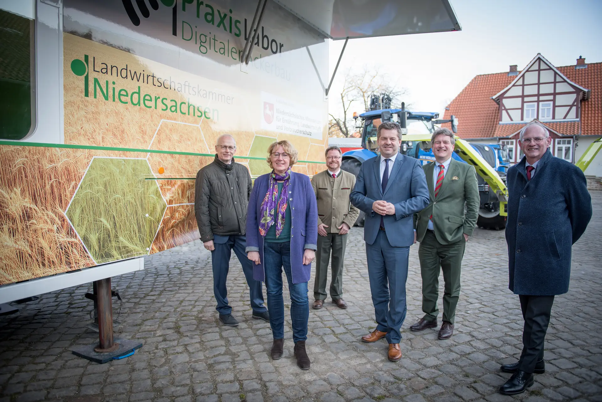 Infos zum PraxisLabor Digitaler Ackerbau für (v.l.) StS Prof. Ludwig Theuvsen (NI), Ministerin Barbara Otte-Kinast, Kammerdirektor Dr. Bernd v. Garmissen, Minister Sven Schulze (ST), Hilmar Frhr. v. Münchhausen (Ackerbauzentrum), StS Gert Zender (ST).Wolfgang Ehrecke