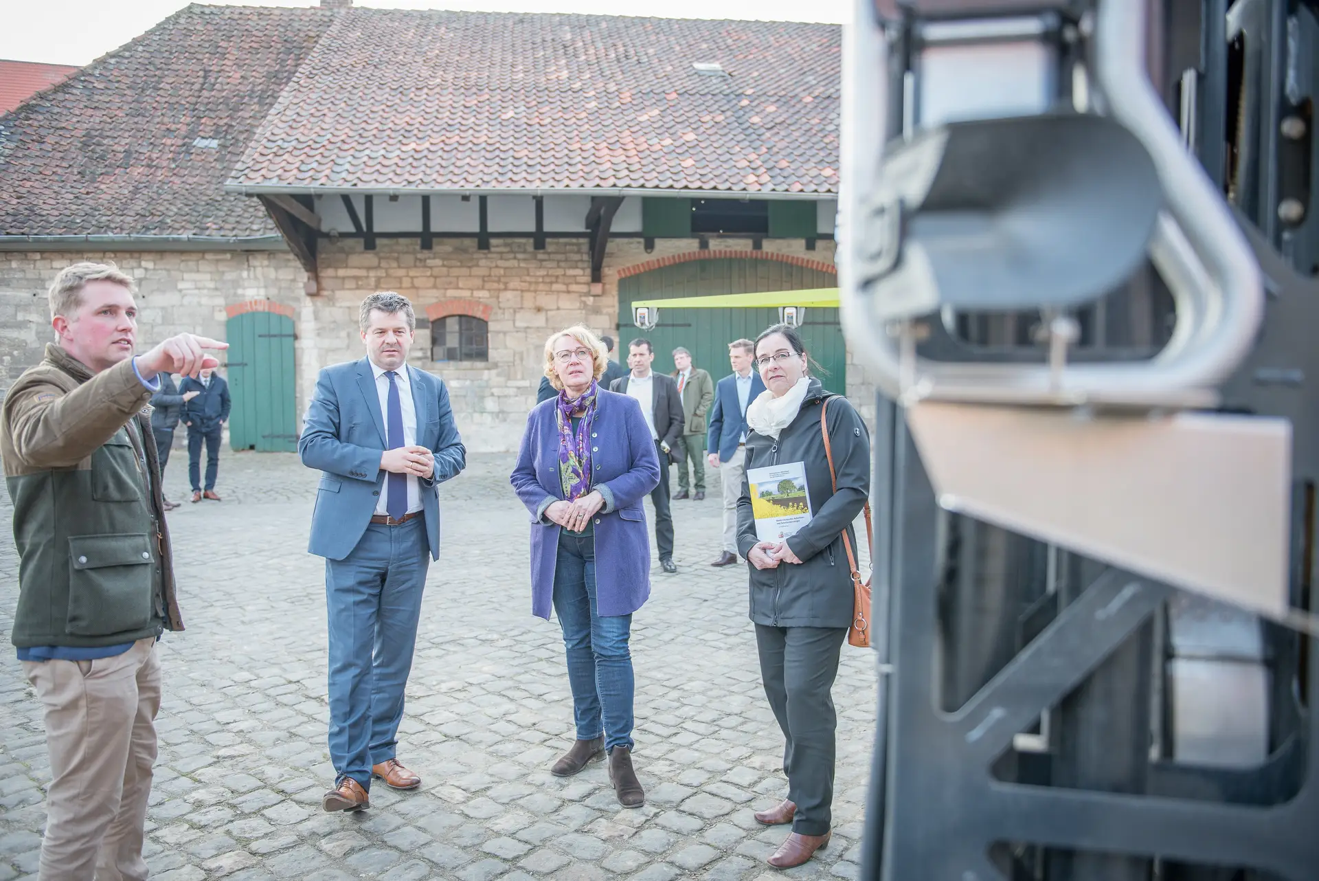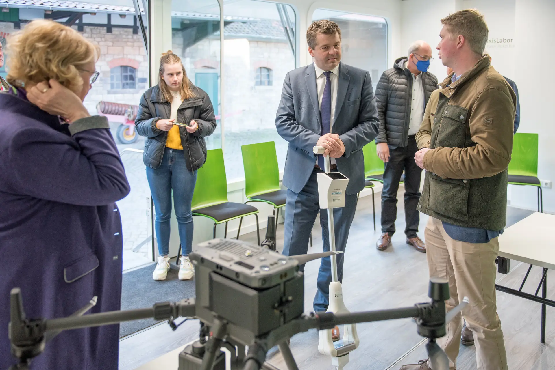 PraxisLabor-Leiter Jobst Gödeke (l.) erläutert (v.l.) Sachsen-Anhalts Agrarminister Sven Schulze, seiner niedersächsischen Amtskollegin Barbara Otte-Kinast und der CDU-Landtagsabgeordneten Veronika Koch die Ausstattung der Einrichtung im Kreis Helmstedt.Wolfgang Ehrecke