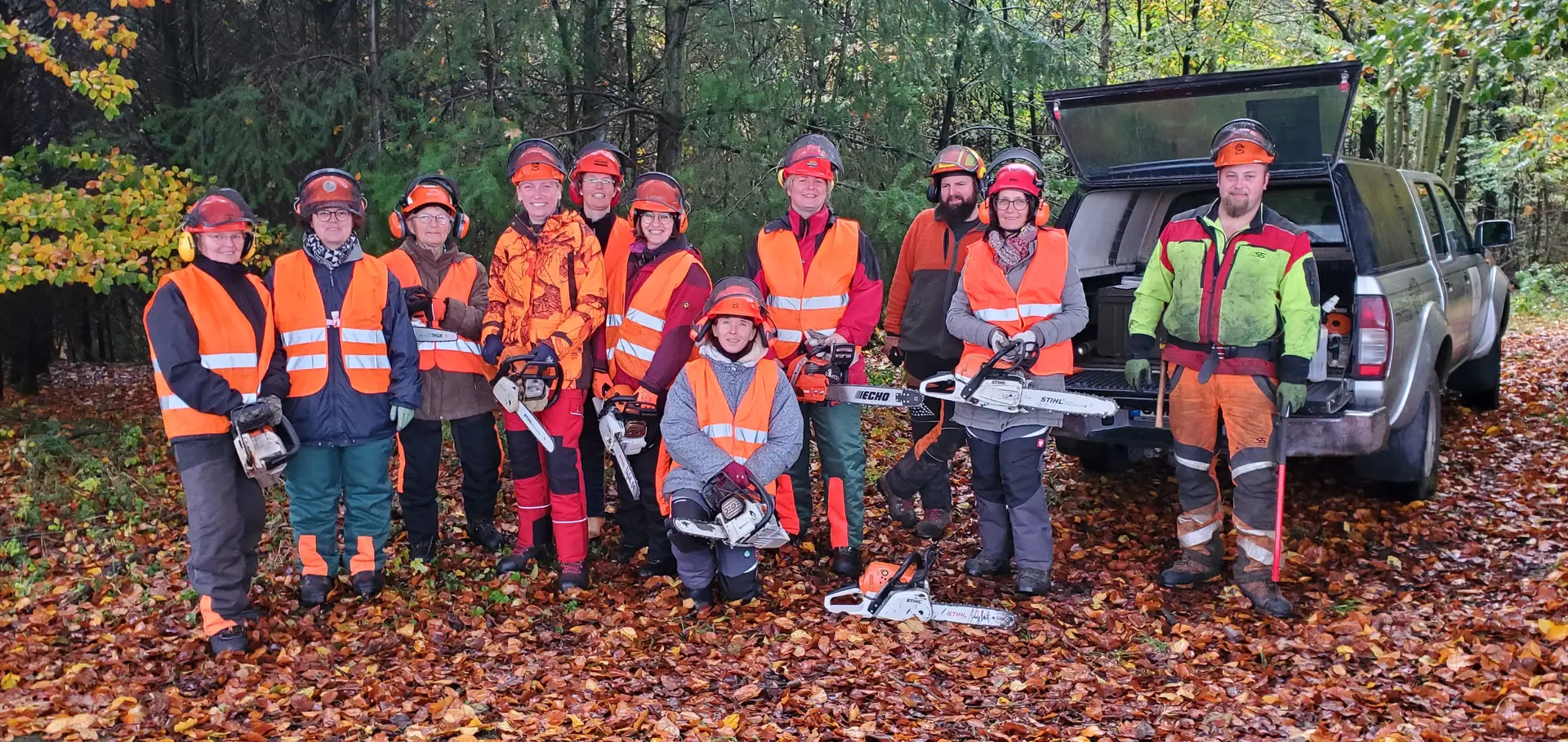 Unsere Kurse richten sich ausschließlich an Frauen, um sich in kleinen Gruppen dem Thema Aufarbeiten und Sägen von Liegendholz bis hin zum Fällen und Aufarbeiten von Starkholz zu widmen. Für unsere Motorsägen-Seminare konnten wir den Forstwirtschaftsmeister Christian Gräfe gewinnen, der die Theorie sehr anschaulich vermittelt und in der praktischen Unterweisung mit viel Geduld das korrekte Schneiden und Fällen begleitet und auf Gefahrenpotentiale aufmerksam macht. Die nächsten Kurse finden im Herbst 2025 statt.