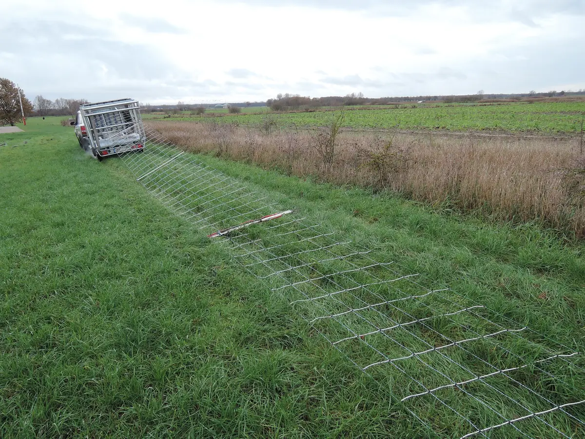 Auf einem Zauninformationstag der Landwirtschaftskammer Niedersachsen - in Zusammenarbeit mit den Kollegen aus Schleswig-Holstein - in Echem, erläutern Fachleute Technik und Fördermöglichkeiten für Nutztierhalter*innen.