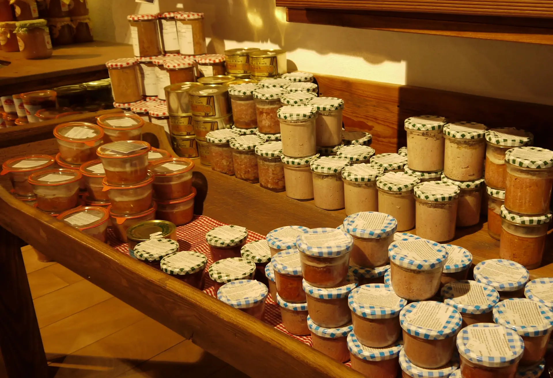 Wurstwaren in HofladenSabine HoppeHalbkonserven werden nur „eingekocht“, heißt pasteurisiert. Bei der Pasteurisation werden kürze Zeiten und niedrigere Temperaturen als beim Sterilisieren angewendet, das schont bestimmte Inhaltsstoffe der Lebensmittel. Die Struktur und Konsistenz bleiben bei einigen Produkten besser erhalten. Das wirkt sich auch auf den Geschmack aus.