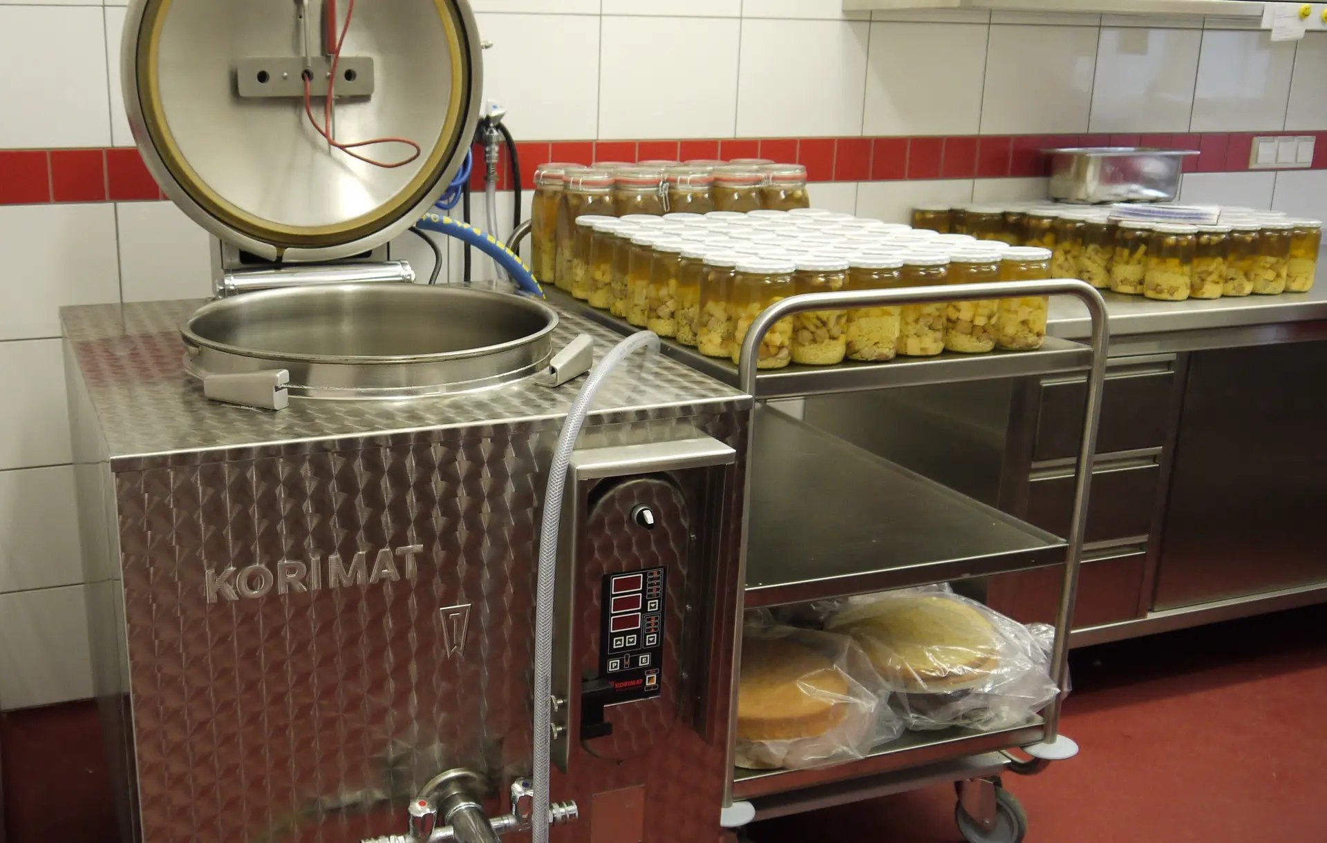Vollkonserven werden dagegen in einem Autoklav sterilisiert. Ein Autoklav ist imAutoklav in der HofkücheSabine Hoppe Prinzip nichts anderes als ein Schnellkochtopf, nur entsprechend größer. In einem Autoklaven sterilisieren die Direktvermarkter und Hofschlachter Ihre Fleisch- und Wurstwaren und erreichen so eine längere Haltbarkeit. Darüber hinaus können so hergestellte Produkte ohne Kühlung angeboten und gelagert werden. Das wiederrum spart auch Energie. Nach dem Öffnen müssen allerdings auch Vollkonserven gekühlt werden und kurzfristige verbraucht werden.