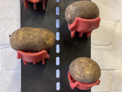 Zu bedenken ist allerdings auch, dass bei der Verwendung von Übergrößen schnell große Tonnagen an Pflanzgut je Hektar notwendig werden, die einerseits logistische Herausforderungen darstellen, andererseits aber auch die Pflanzgutkosten je Hektar beeinflussen, sodass die Wirtschaftlichkeit in einzelnen Fällen in Frage gestellt sein kann. Zudem sollte bei der Verwendung von Übergrößen geprüft werden, wie sicher diese mit Becherlegemaschinen geschöpft werden können. Kommt es hier zu einem vermehrten Auftreten von Fehlstellen, wirken sich diese auf Grund des großen Legeabstandes besonders stark aus. Bis zu einem gewissen Grad kann durch den Wechsel auf ein Becherband mit größeren Bechern auf die Knollengröße reagiert werden. Sicherer lassen sich Übergrößen jedoch mit Riemenlegemaschine pflanzen.