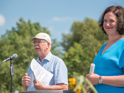 Kammerpräsident Gerhard Schwetje dankte der Senatorin für Umwelt, Klima und Wissenschaft in Bremen für die gute Zusammenarbeit bei der Organisation des Feldtages und auch darüber hinaus für die ausgezeichnete Kooperation in den gemeinsamen Projekten: „Hinsichtlich der hohen Flächenanteile des Moorgrünlands sind die Gemeinsamkeiten Niedersachsens und Bremens groß. Wir benötigen hier neue, innovative Ansätze, die die Inwertsetzung der Produktion und somit die Lebensgrundlage der hier lebenden Menschen aufrechterhalten. Denn ohne die hier wirtschaftenden Landwirtinnen und Landwirte wird es auch mit der Produktion von Ökosystemleistungen schwierig. Angesichts des regen Interesses an diesem Feldtag sehen wir uns darin bestätigt, diese Herausforderungen länderübergreifend gemeinsam anzugehen und weiterhin mit kooperativen Projekten wertvolle Erfahrungen und Handlungsempfehlungen zu erarbeiten.“