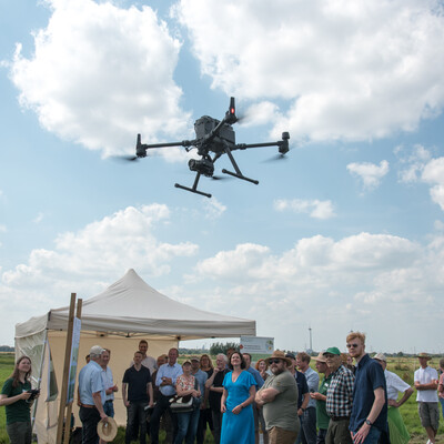 Die Reduzierung von Pflanzenschutzmitteln wie Glyphosat und die Nutzung digitaler Methoden steht in den von der Senatorin für Umwelt, Klima und Wissenschaft finanzierten und von der LWK Niedersachsen umgesetzten Modellprojekten im Vordergrund. Die Besucherinnen und Besucher konnten vor Ort unter anderem eine Demonstrationsanlage zur rein mechanischen Grünlanderneuerung, eine digital- und sensor-gestützte Maschine zur Ampferbekämpfung und innovative Drohnentechnik zur gezielten Unkrauterkennung aus der Luft kennen lernen.