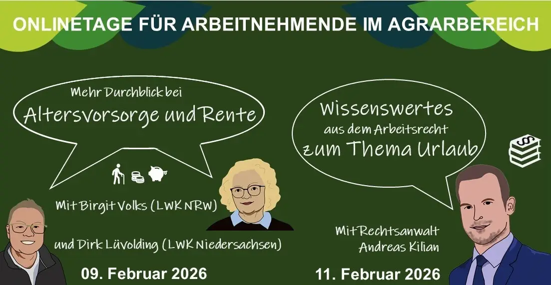 Arbeitnehmertage online 2026 - eine Veranstaltungsreihe der Landwirtschaftskammern Schleswig-Holstein, Niedersachsen, Nordrhein-Westfalen und Rheinland-Pfalz sowie des Landesbetrieb Landwirtschaft Hessen (LHH) im Onlineformat