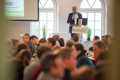 Kammer-Vizepräsident Manfred Tannen eröffnete die Veranstaltung: „Wir stehen für eine umweltgerechte Produktion und Biodiversität auf unserem Grünland, müssen dabei aber auch immer die Ökonomie unserer Betriebe im Fokus haben“, sagte Tannen. Angesichts der Blauzungenkrankheit, an der im vergangenen Jahr tausende Tiere erkrankt waren, betonte Tannen außerdem, wie wichtig die flächendeckende Impfung gegen das Virus ist. Vor dem Hintergrund des Falls von Maul- und Klauenseuche in Brandenburg müsse das Thema Biosicherheit auf den landwirtschaftlichen Betrieben stets ernst genommen werden.