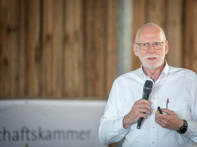 Kammerpräsident Gerhard Schwetje beim Praxistag Alternative Antriebsenergien für Landmaschinen am 01.07.2025 im LBZ Echem.Wolfgang Ehrecke