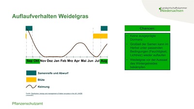 Beim Ackerfuchsschwanz steigen die Resistenzfunde in Niedersachsen für die Wirkstoffgruppe der ALS-Hemmer (Mesosulfuron + Iodosulfuron) seit 2007, Cycloxydim und Flufenacet seit 2009 und Clethodim seit 2014 in Niedersachsen stetig an. Auch Weidelgrasarten folgen der Resistenzentwicklung analog dem Ackerfuchsschwanz, allerdings deutlich schneller! Es gibt immer häufiger Getreidebestände, die aufgrund hoher Anteile von Schadgräsern daher nicht mehr geerntet werden konnten! Multiple Resistenzen gegenüber mehreren Wirkstoffgruppen auf einem Feld werden in Niedersachsen an jeder dritten eingesendeten Verdachtsprobe für Ackerfuchsschwanz nachgewiesen, diese Standorte sind durch eine Nachauflaufbehandlung mit ACCase- bzw. ALS-Hemmern und auch durch Mischungen dieser Wirkstoffgruppen nicht mehr zu bekämpfen, der Anteil dieser „Supermutanten“ nimmt zu! Auch beim Weidelgras nehmen die Anteile an multiplen Herbizidresistenzen zu.