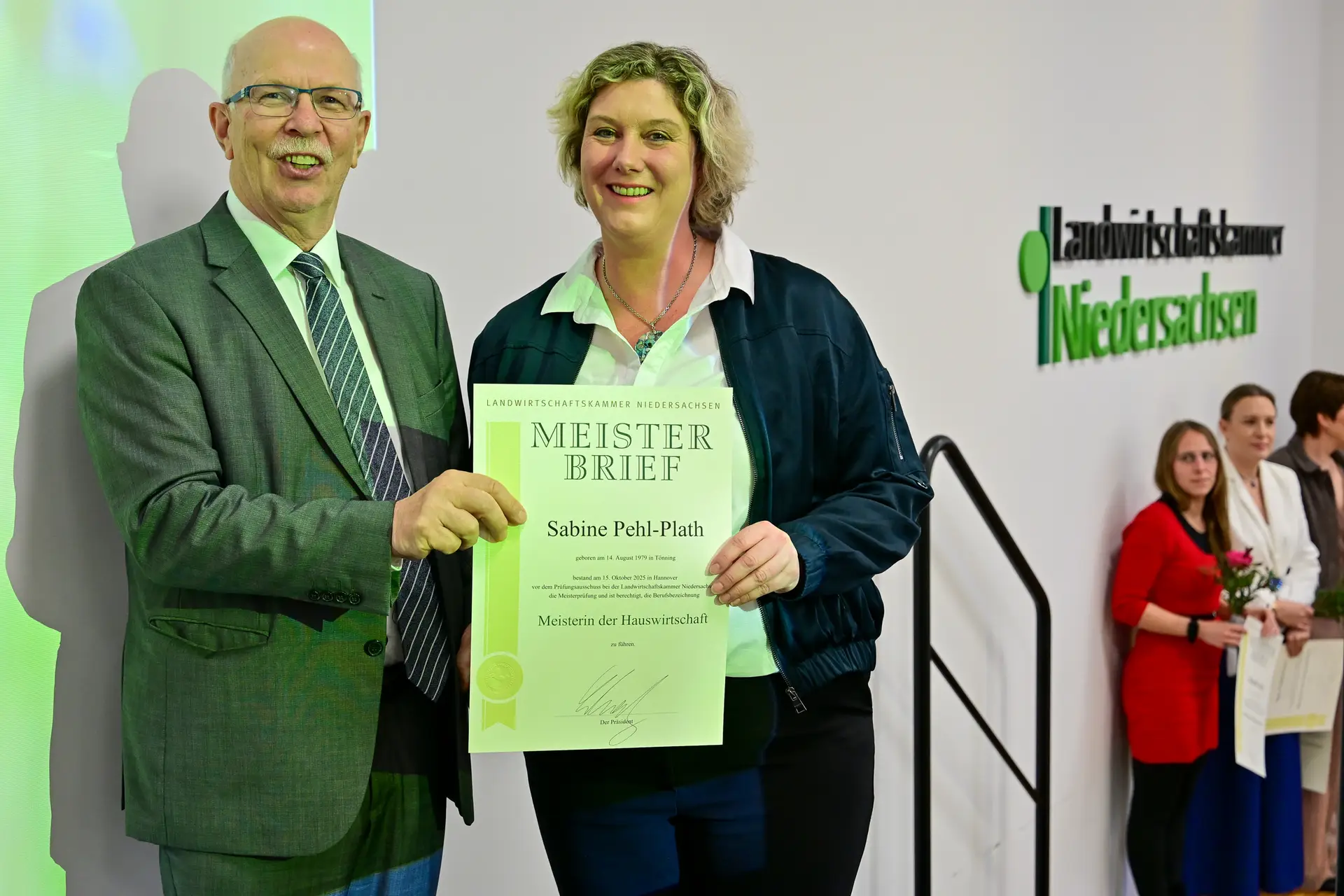 Übergabe Meisterbriefe Hauswirtschaft 2025 in Hannover: LandFrauen-Präsidentin Elisabeth Brunkhorst (Hannover) und Juliane Pegel (Hintergrund).Andreas Teichler