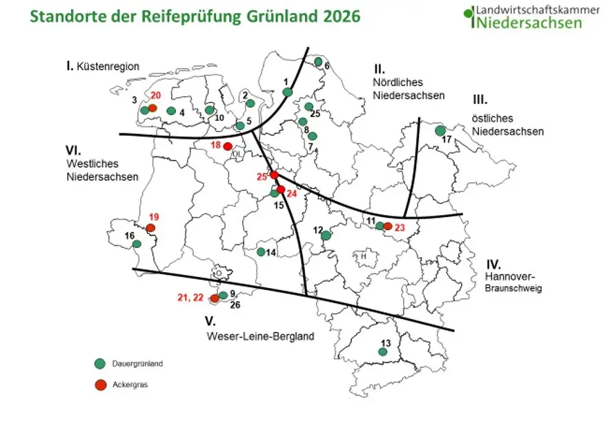Abbildung 3: Standorte der Reifeprüfung Grünland und Ackergras 2026