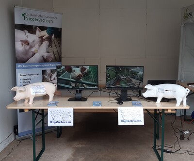 Vom 7. bis 8. Juni 2023 fand das erste Fachforum Schwein und Geflügelmast in den Emslandhallen in Lingen (Ems) statt. Bei dieser Veranstaltung beteiligte sich das Projekt DigiSchwein am Stand der Landwirtschaftskammer Niedersachsen. Über zwei Tage hatten rund 2.500 Besucherinnen und Besucher die Möglichkeit, sich über Zwischenergebnisse und den Fortschritt des Projektes zu informieren. Das Fachforum wurde durch Podiumsdiskussionen ergänzt, unter anderem zum Oberthema "Evolution im Schweinestall – Auf dem Weg zu Smart Pig Farming".