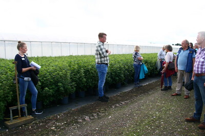 Die Reise durch das Pinneberger Baumschulgebiet begann mit der Baumschule Heydorn Söhne, setzte sich im Betrieb Kordes Rosen fort. Im Jungpflanzenbetrieb Kordes ging es weiter, gefolgt vom Spezialbetrieb Heinz Clasen Blaubeerpflanzen und abschließend mit der Baumschule Johannes Clasen. Hendrik Averdieck stellte die Erfolge und Herausforderungen vor.
