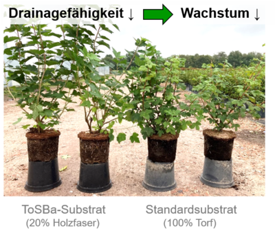 Im Rahmen des Modell- und Demonstrationsvorhabens „ToSBa" soll gezeigt werden, dass ein großer Teil der in Deutschland konventionell produzierten Gehölze im Container auch in stark torfreduzierten Substraten unter Praxisbedingungen ohne Qualitätseinbußen kultiviert werden kann.