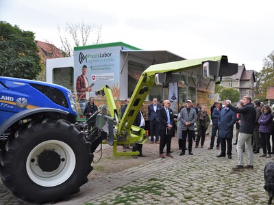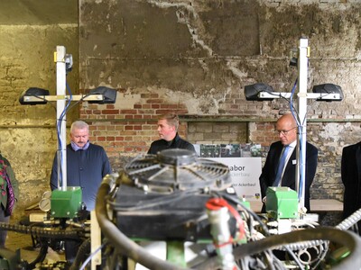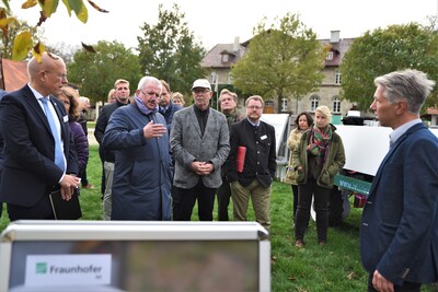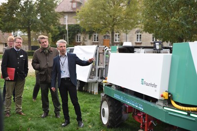 Zu sehen waren im Rahmen eines Rundgangs auch Entwicklungen der beteiligten Fraunhofer-Institute, zum Beispiel der autonome Feldroboter des Fraunhofer IKTS. Um den landwirtschaftlichen Strukturwandel in der Region Helmstedt modellhaft voranzutreiben, plant das Fraunhofer IST gemeinsam mit dem Fraunhofer-Institut für Keramische Technologien und Systeme IKTS den Standort Helmstedt zu nutzen, um überregionale Initiativen und regionale Partner zu vernetzen.