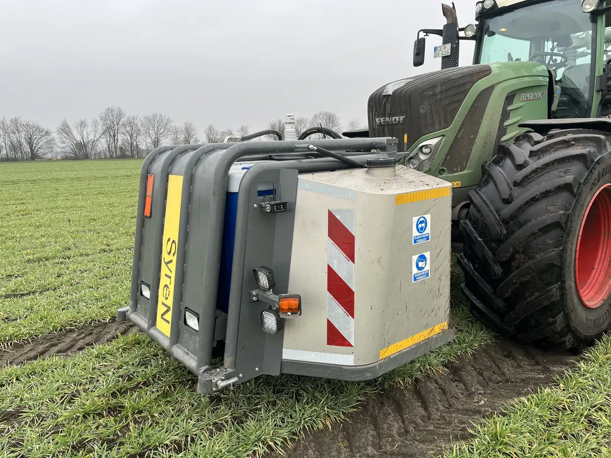 Im Fronttanksystem des Schleppers befindet sich ein doppelwandiger IBC-Container mit der Schwefelsäure, sowie 2 Wassertanks und 1 Tank für Additive. Die Mischeinheit mit Säureinjektion befindet sich hinter dem Dreiwege-Hahn und ein pH-Sensor misst am Schleppschlauch mit der größten Länge kontinuierlich den pH-Wert des flüssigen Wirtschaftsdüngers.
