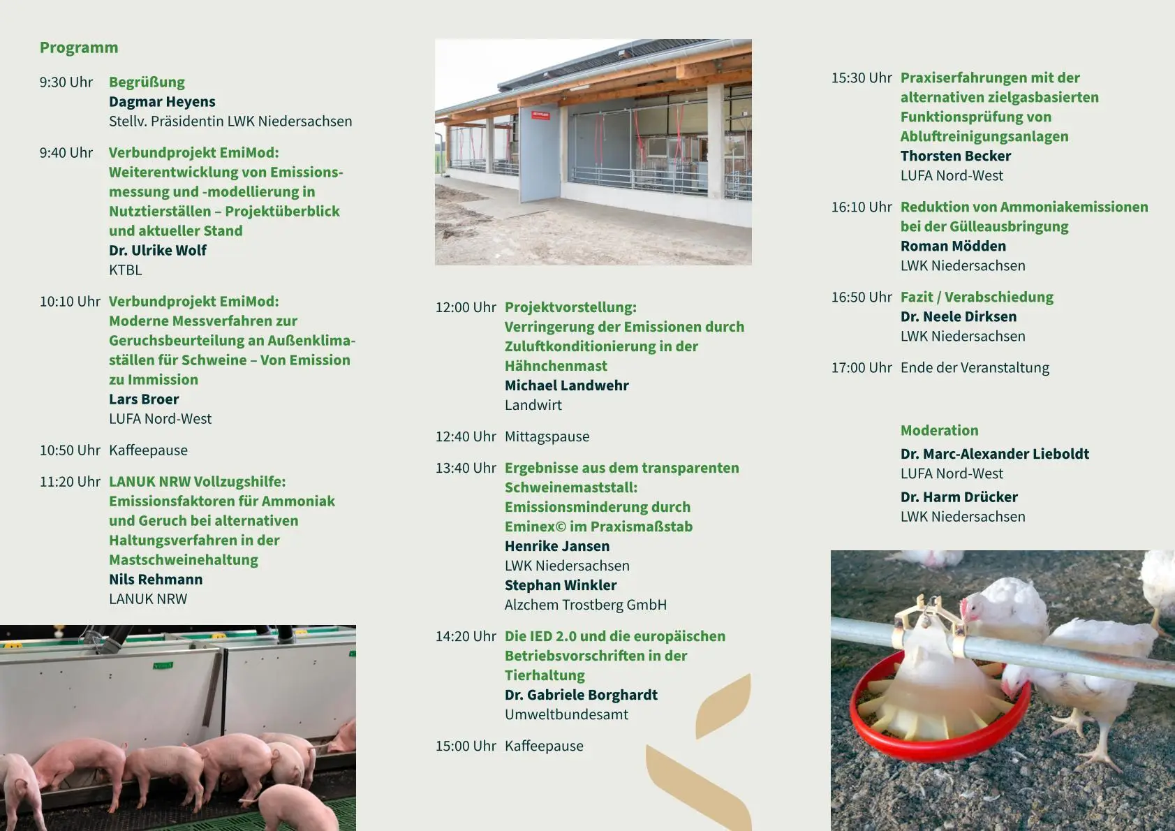 Die Veranstaltung richtet sich an alle Fachleute, die sich mit Fragen der Luftreinhaltung und des Immissionsschutzes in der Nutztierhaltung befassen und einen fundierten Überblick über technische, rechtliche und praktische Entwicklungen suchen.